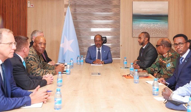 Jimcihii shalay Safiirka cusub ee Mareykanka u qaabilsan Soomaaliya, Richard H. Riley, ayaa la kulmay Madaxweyne Xasan Sheekh Maxamuud iyo Gen. Michael E. Langley, Taliyaha Ciidamada Mareykanka ee Afrika (AFRICOM). Waxa ay ka wadahadleen iskaashiga dhanka amniga ee istiraatijiyadeed ee ka dhaxeeya Soomaaliya iyo Mareykanka,iyaga oo diiradda lagu saaray tallaabooyinka wadajirka ah ee ka hortagga argagixisada.