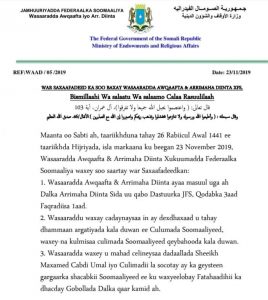 Wasaaradda Awqaafta iyo Arimaha Diinta ayaa si rasmi ah u sheegtay in gebi Ahaamba la joojiyay Muxaadaradii Sheekh Umal, ka jeedin lahaa Eng Yariisow Stadium ka dib markii ay sheegtay in qaar ka mid ah Culimadda Soomaaliyeed ay buuq ku fureen.