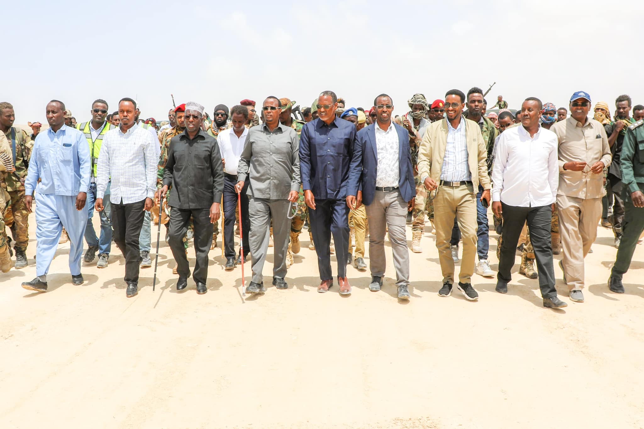 Madaxweynaha Dowladda Hirshabeelle Cali Guudlaawe Xuseen iyo Madaxweynihii hore ee Soomaaliya Mudane Sheekh Shariif Sheekh Axmed ayaa maanta kormeeray Garoonka cusub ee Diyaaradaha Degmada Cadale oo dhismihiisu uu gabo- gabo marayo.
