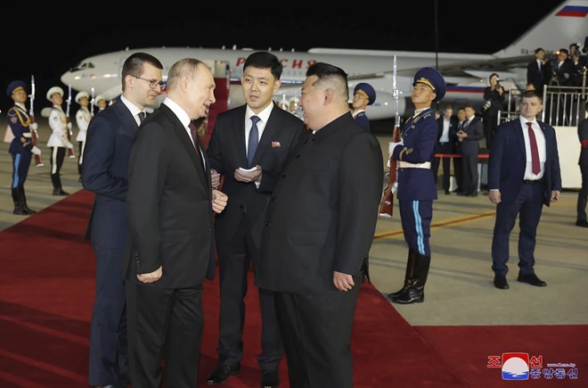 Putin ayaa waxaa garoonka diyaaradaha ee Pyongyang kula kulmay hogaamiyaha Kuuriyada Waqooyi Kim Jong Un. Waa ay is gacan qaadeen oo isku duubeen, Kim ayaa markii dambe kula biiray Putin gaadhigiisa si uu shakhsi ahaan ugu hago Guriga Martida ee Kumsusan ee Pyongyang, sida ay sheegtay wakaaladda wararka dhexe ee Kuuriyada Waqooyi. Hay’addu waxay kulankooda ku tilmaantay dhacdo taariikhi ah oo muujinaysa “la’aanta iyo waarta” saaxiibtinimada iyo wadajirka labada waddan.