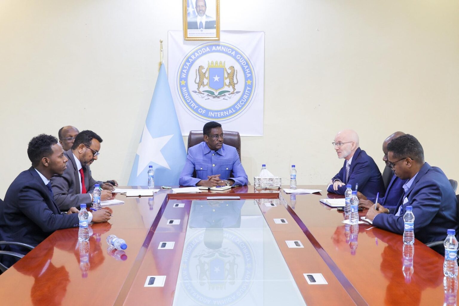 Wasiirka Amniga Gudaha Xukuumadda Federaalka Soomaaliya, Cabdullaahi Sheekh Ismaaciil (Fartaag), ayaa la kulmay Ergeyga Gaarka ah ee Xoghayaha Guud ee Qaramada Midoobay u qaabilsan arrimaha Soomaaliya Danjire James Swan.