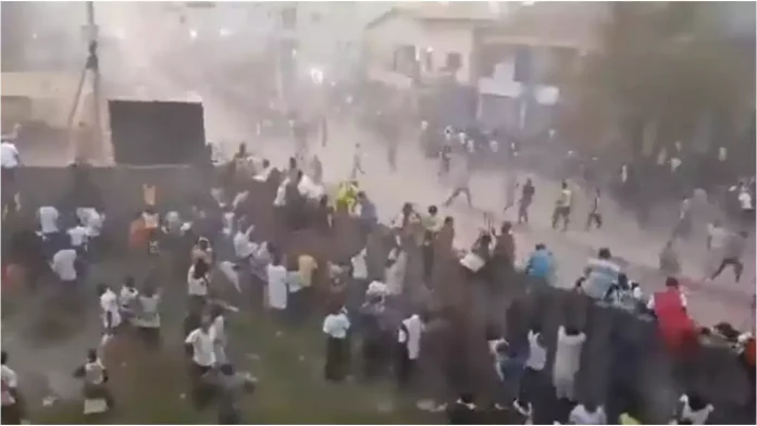 Muuqaalo iyo muuqaalo lagu soo bandhigay baraha bulshada ayaa u muuqda kuwo muujinaya muuqaalo qalafsan oo ka dhacay bannaanka garoonka, iyadoo dadweyne aad u fara badan ay isku dayayeen inay fuulaan darbiyada iyo meydad badan oo dhulka yaalla.