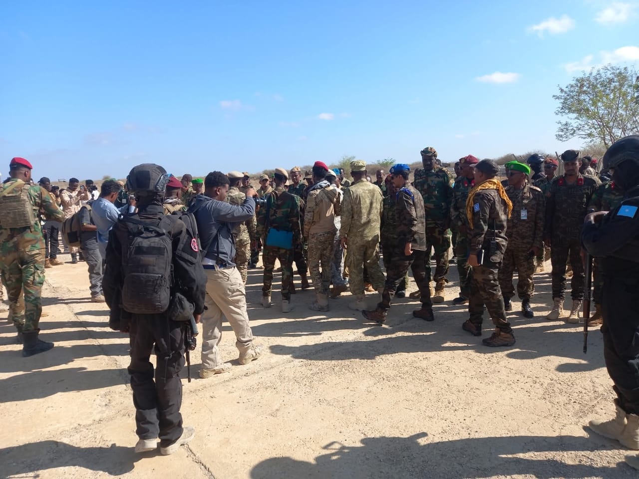 Wafdigan oo loogu soo dhoweeyay garoonka diyaaradaha ee Shaati Gaduud, waxaa qayb ka ah Taliyaha Ciidanka Xoogga Dalka, S/Guuto Ibraahim Maxamed Maxamuud, Guddoomiyaha Maxkamadda Ciidanka Qalabka Sida, Gaashaanle Sare Xasan Cali Nuur Shuute, iyo Taliyaha Ciidanka Booliska Soomaaliyeed, Sarreeye Guuto Asad Cismaan Cabdullaahi