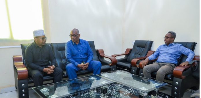 Wasiirka arrimaha gudaha, federaalka iyo dib u heshiisiinta mudane Ahmed Moallim Fiqi oo maanta booqasho ku tagay xarunta wasaaradda arrimaha gudaha Galmudug ee Magaalada Dhuusamareeb  ayaa waxaa halkaas kusoo dhoweeyay Wasiirka Arrimaha Gudaha & Dib u heshiisiinta Galmudug, Cabdi Maxamed Jaamac (Cabdi Waayeel).